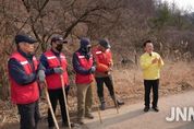 제이앤엠뉴스 | 춘천시가 아프리카돼지열병(ASF) 확산 방지를 위해 야생멧돼지 폐사체 수색 현장을 직접 점검했다. 11일, 육동한 춘천시장은 서면 덕두원리 일대에서 환경부 수색팀이 진행 중인 멧돼지 폐사체 탐색 작업을 살펴보고 현장 인력을 격려했다. 춘천시에 따르면 올해 들어 지역 내에서 야생멧돼지 ASF 양성 사례는 12건이 확인됐으며, 지난 6일에는 서면 당림리에서 발견된 멧돼지 2마리가 양성 판정을 받았다. 환경부 수색팀은 서면 일대를 중심으로 지난 3일부터 폐사체 수색을 이어가고 있으며, 이 작업은 13일까지 계속된다. 춘천시는 북한강을 ASF 방어의 최종선으로 삼고, 야생 멧돼지의 남하를 막기 위해 서면 일대를 멧돼지 관리지역으로 지정해 울타리 점검을 강화하고 있다. 동시에 양돈농가에 대한 방역 점검과 검사도 병행하고 있다. 야생동물 피해방지단에는 총기·차량 방역과 소독용품 지원 등 현장 방역 조치가 이뤄지고 있다. 춘천시 관계자는 "ASF 확산 방지를 위해서는 야생 멧돼지 폐사체의 조기 발견이 무엇보다 중요하고 춘천시민들께서도 산행 중 폐사체를 발견할 경우 즉시 신고해 ASF 확산 방지에 적극 동참해 달라"고 말했다.