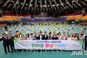 제이앤엠뉴스 | 수원특례시는 2일 수원종합운동장 수원체육관에서 ‘제3회 수원시 사립유치원 한마음 줄넘기대회’를 열었다. 관내 사립유치원에 재원 중인 5세 원아 1500여 명이 참가했다. 이번 대회는 수원시유치원연합회가 주관하고 수원특례시가 후원했다. 대회는 단체전과 개인전으로 진행됐다. 박정순 수원시유치원연합회장은 “줄넘기는 신체 발달과 집중력 향상에 도움이 되는 전신운동”이라며 “원아들은 줄넘기 기록에 도전하며 협동심과 자신감을 키우고, 친구들과 함께 뛰며 성취감을 느낄 수 있었다”고 말했다. 수원시 관계자는 “아이들이 즐겁게 뛰며 건강하게 성장하길 바란다”며 “수원시는 앞으로도 유아교육 발전을 위해 노력하겠다”고 말했다. [뉴스출처 : 경기도 수원시]