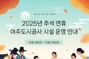 제이앤엠뉴스 | 여주도시공사는 2025년 추석 명절을 맞아 고향을 찾는 귀성객과 시민들의 편의를 위해 주요 시설 운영시간 조정, 무료개방 등 특별 서비스를 제공한다고 2일 밝혔다. 공사는 우선, 추모객이 집중되는 여주추모공원의 추석기간(5일~7일) 운영 시간을 기존 오전 9시~오후 6시에서 오전 7시~오후 6시로 2시간 조기개장하여 확대운영한다. 이를 통해 명절연휴 기간 원활한 참배가 가능하도록 편의를 도울 예정이다. 또한, 시민과 방문객들의 주차 편의를 위해 공영주차장을 연휴기간(3일~9일) 전면 무료 개방한다. 이를 통해 귀성객과 지역 상권을 찾는 이용객들이 보다 편리하게 주차할 수 있을 것으로 기대된다. 교통약자 이동지원센터의 경우, 특별교통수단은 추석기간(5일~7일) 무료 운행하며, 바우처 택시는 정상 요금으로 운영된다. 공사는 교통약자의 이동권 보장을 위해 차량 안전 점검을 마치고 원활한 운행 서비스를 제공할 계획이다. 종합운동장 등 체육시설과 오학, 점동 파크골프장은 추석기간(5일~7일)에만 휴무이고 그 외 휴일은 정상운영하며, 이 중 파크골프장은 대체공휴일(8일)과 한글날에 무료 개방하