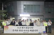 제이앤엠뉴스 | 동두천시의회는 지난 1일 추석 명절을 맞아 방범기동순찰연합대(연합대장 권태연)와 모범운전자회를 방문해 위문품을 전달하고 감사의 마음을 전했다. 이날 방문에는 김승호 의장, 의원 그리고 관련 공무원들이 함께했으며 평소 지역 안전을 위해 헌신하는 대원들과 회원들을 격려하고 애로사항을 청취하는 시간을 가졌다. 방범기동순찰연합대는 관내 취약 지역 순찰을 통해 범죄 예방과 주민 안전에 힘쓰고 있으며, 모범운전자회는 교통질서 확립과 교통사고 예방 활동에 앞장서고 있다. 김승호 동두천시의회 의장은 “시민들의 안전하고 편안한 명절을 위해 묵묵히 애써주시는 분들의 노고에 깊이 감사드린다”며 “앞으로도 행정에서 적극 지원해 안전한 도시, 행복한 동두천을 만드는 데 최선을 다하겠다”고 말했다. [뉴스출처 : 경기도 동두천시의회]