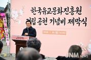 제이앤엠뉴스 | 논산시는 26일 노성면에 위치한 한국유교문화진흥원에서 ‘기념비 제막식’을 개최했다. 제막식에는 조관행 노성면 어르신회장을 비롯해 백성현 논산시장, 조용훈 논산시의회의장 및 시 의원, 관내 유관기관과 단체 관계자 등 200여 명이 참석했다. 백성현 논산시장은 “이 세상은 누군가의 희생과 헌신의 씨앗으로 피어나는 꽃과 같다”며 “민족의 얼을 길이 보전하기 위해 큰 결심을 해 주신 종중 어르신들께 깊은 감사의 인사를 드린다”고 말했다. 이어 “전 세계적으로 유학에 대한 관심이 높아지고 있는 만큼, 한국유교문화진흥원은 논산의 뿌리깊은 유교 문화와 정신을 널리 전파하는 중심 역할을 하게 될 것”이라며 “문화, 경제, 농업, 국방 등 모든 분야에서 논산의 가치를 높이기 위해 실천하는 행정을 펼쳐 나가겠다”고 말했다. 지난 2022년 개관한 한국유교문화진흥원은 한국유교문화와 충청지역 국학의 대표적인 연구기관이다. 건립 과정에서 파평윤씨노성대종중은 약 2만 평의 토지를 기부하며 논산이 지닌 유교적 가치와 정신을 후대에 온전히 계승하고 지역 문화의 뿌리를 굳건히 세울 수 있도록 하는 데 기여했다.