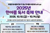 제이앤엠뉴스 | 수원시청소년청년재단 수원청소년문화센터 한아름도서관은 2025. 독서의 달을 기념하여‘한아름독서축제’를 10월 10일부터 10월 19일까지 운영한다. 이번 독서축제는 △스피치 강사와 함께하는 북토크 강연 △동화구연 공연 △재미 두배 1+1 체험활동 △원화 명화 전시 △도서관 이용자 대출 이벤트 등 청소년과 지역주민이 함께 공감하며 즐길 수 있는 다양한 프로그램으로 구성했다. △스피치 강사와 함께하는 북토크 강연 △동화구연 공연은 사전접수를 통해 참여가 가능하며, 재미 두배 1+1 체험 활동은 별도 접수 없이 현장에서 선착순 참여로 가능하다. 참가비는 전액 무료이다. 사전접수는 10월 1일 수요일부터 선착순으로 모집하며, 신청 방법은 수원시청소년청년재단 홈페이지‘한아름독서축제’안내문의 QR코드로 접속하여 신청할 수 있다. 한아름도서관은 이번‘한아름독서축제’를 통해 청소년과 지역주민의 독서 문화를 장려하고 도서관 활성화를 도모하고자 한다. [뉴스출처 : 경기도 수원시]