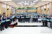 제이앤엠뉴스 | 화순군은 10월 2일 군청 대회의실에서 ‘농어촌 기본소득 시범사업 화순 유치 결의대회’를 열고, 시범사업 유치를 위한 강한 의지를 밝혔다. 이번 결의대회는 인구 감소와 고령화 등으로 침체된 농촌 지역에 활력을 불어넣기 위해 정부가 추진 중인 ‘농어촌 기본소득 시범사업’의 대상지로 화순군이 선정될 수 있도록 결의를 다지는 자리였다. ‘농어촌 기본소득 시범사업’은 전국 69개 인구감소지역 중 6개 군을 선정해 2026년부터 2년간 해당 지역 주민 모두에게 매월 15만 원의 기본소득을 지급하는 정책이다. 결의대회에는 구복규 화순군수, 오형열 군의회 의장을 포함한 군의원 10명이 참석해 피켓을 들고 화순군의 적극적인 참여 의지를 나타냈다. 또한 화순군 농촌지도자회 회원 20여 명과 군청 직원 250여 명도 미니 현수막을 펼쳐 보이며 시범사업 유치에 대한 강한 의지를 나타냈다. 행사 말미에는 참석자 전원이 ‘농어촌 기본소득 시범사업은 화순으로’를 힘차게 외치며, 화순군민의 단합된 염원과 결의를 다시 한번 확인했다. 구복규 군수는 “침체된 농촌에 활력을 불어넣고, 군민