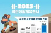제이앤엠뉴스 | 문화체육관광부는 만 10세 이상인 국민 9천 명을 대상으로 시행한 ‘2025년 국민생활체육조사’ 결과를 발표했다. 2025년 생활체육 참여율(주 1회, 30분 이상)은 62.9%로, 전년 대비 2.2%포인트(p) 상승했다. 특히 주 2회 이상 참여율은 52.2%로 2.7%포인트(p) 증가했다. 연령대별로는 20대부터 60대까지의 참여율은 65% 내외로 비교적 고르게 나타났으나, 10대(43.2%)와 70대 이상(59.5%)은 다른 연령대에 비해 낮은 수준을 보였다. 주요 참여 종목은 걷기(40.5%), 보디빌딩(17.5%), 등산(17.1%) 순으로 나타났다. 이 중 등산은 전년 대비 5.0%포인트(p) 증가해 참여 비중의 증가 폭이 가장 컸다. 주로 참여하는 체육활동(1+2+3순위) 1회 평균 참여 시간은 ‘1시간~1시간 30분 미만’이라고 응답한 비율이 67.3%로 가장 높았다. 최근 1년간 체육활동 참여 기간이 ‘9개월 이상’이라고 응답한 비율은 91.4%였다. 규칙적 참여자의 평균 참여 기간은 14개월로, 전년(11개월) 대비 증가한 것으로 나타났다. 체육활동 장소로는 공공체