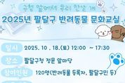 제이앤엠뉴스 | 수원시 팔달구는 10월 18일 오후 12시부터 17시 30분까지 팔달구청 정문 앞마당에서 ‘2025년 팔달구 반려동물 문화교실’을 개최한다고 밝혔다. 반려동물 문화교실은 성숙한 반려문화 확산과 올바른 반려동물 관리, 양육 방법을 알리기 위해 마련됐으며 반려동물 등록자 및 팔달구민 120명을 대상으로 추진한다. 교육 프로그램은 △인식표 만들기 △산책 그룹 훈련 △반려견 셀프 미용으로 총 3개 프로그램을 추진한다. 12시부터 진행하는 ‘인식표 만들기’는 반려견 유실 방지를 위해 동물등록번호와 견주 연락처를 새긴 맞춤형 인식표를 직접 제작할 수 있고, 14시부터는 ‘산책 그룹 훈련’에서는 산책줄 핸들링과 돌발 상황 시 대처법 등 및 올바른 산책 방법에 대해 배워볼 수 있다. 15시 30분에는 초보자도 쉽게 실천할 수 있는 ‘반려견 셀프 미용 수업’이 준비되어 있다. 팔달구 관계자는 “2025년 반려동물 문화교실 개최를 통해 구민들이 반려동물을 책임감 있게 관리하고, 올바른 반려 문화가 조성되길 바란다“라고 말했다. 한편, 팔달구는 구 홈페이지, 안내문자 및 QR코드를 통해 수