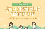 제이앤엠뉴스 | 안성시는 오는 10월 1일부터 11월 7일까지 ‘2025년도 하반기 안성시 대학생 학자금 대출이자’ 지원 신청을 받는다. 지원 대상은 공고일(2025. 10. 1.)기준으로 안성시에 주민등록 주소를 두고 재학(휴학 포함)중인 대학(원) 재학생(휴학생)이다. 지원 대상자로 선정되면 대상자가 한국장학재단에서 대출받은 학자금에 대한 2025년 상반기(1월~6월) 발생 이자를 안성시가 지급하게 된다. 지급은 대출 계좌 원리금에서 차감하는 방식으로 진행되며, 지원 내역은 12월 지급이 확정된 시점에 한국장학재단 인터넷 홈페이지에서 확인할 수 있다. 신청 방법은 주소지 읍·면·동 행정복지센터 또는 안성시청(미래교육과)으로 방문하여 접수하면 된다. 안성시 관계자는 “학자금 대출이자 지원 사업을 통해 대학생들의 학업 부담을 완화하고, 학업에 전념할 수 있는 환경을 조성하는데 도움이 되길 바란다”고 전했다. [뉴스출처 : 경기도 안성시]
